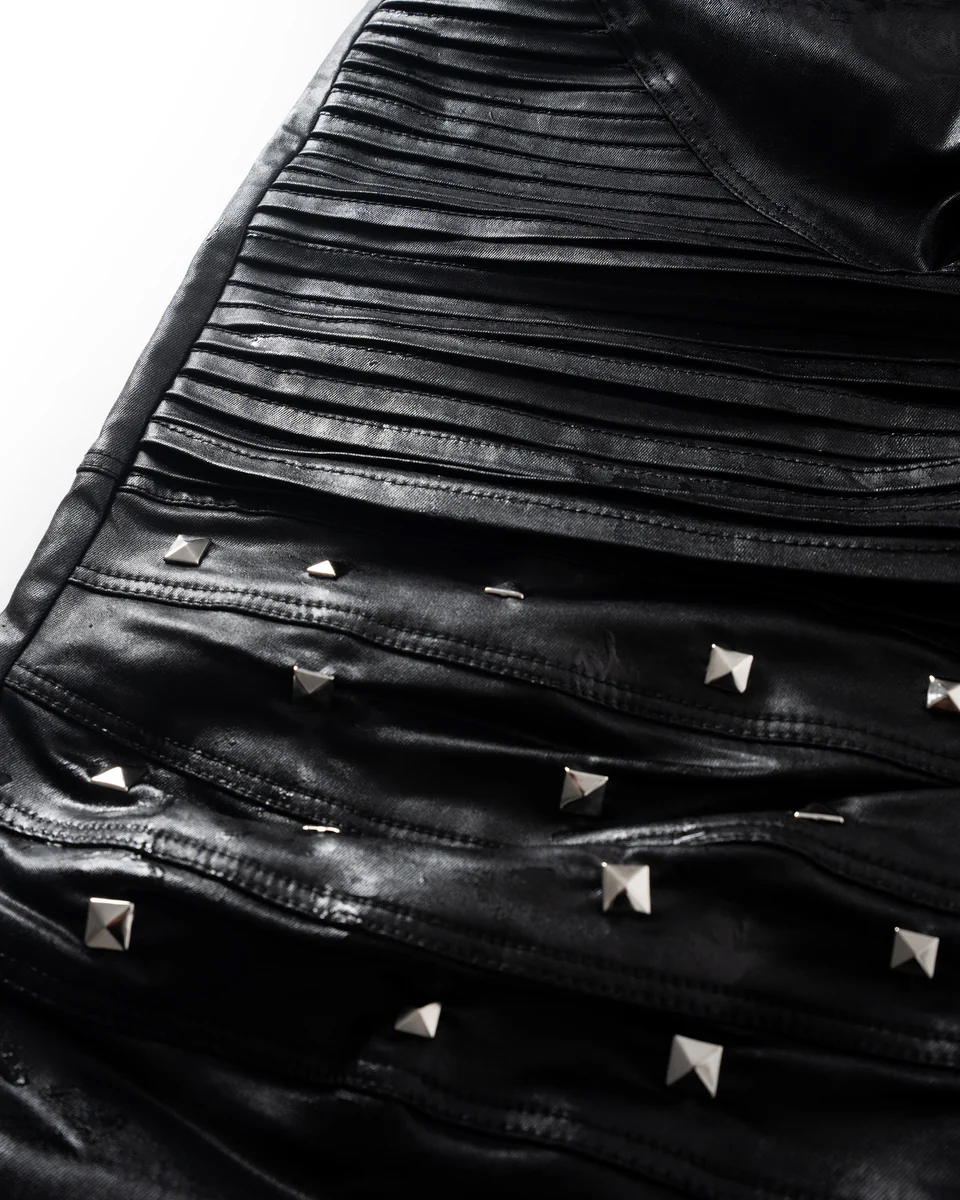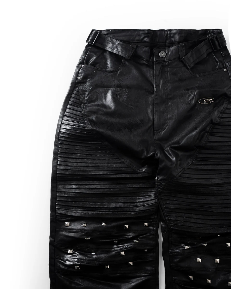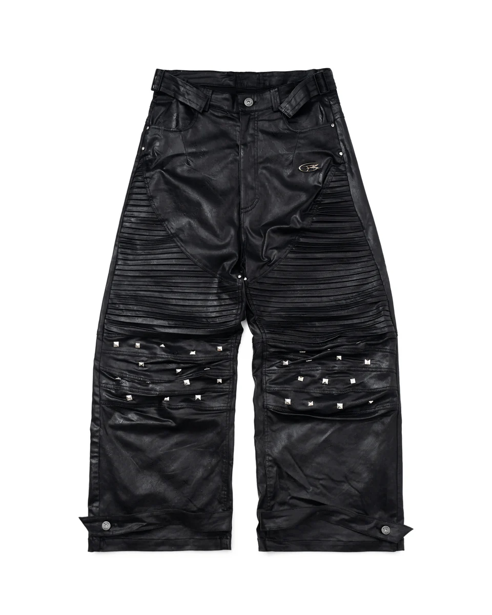 Material: faux leather โข Size S: Length: 108cm Waist: 79cm Cuff: 30cm โข Size M: Length: 109cm Waist: 82cm Cuff: 30cm โข Size L: Lenght: 110cm Waist: 88cm Cuff: 31cm *Size recommendations Size 1 - height 155-170 cm, weight 45-58kg Size 2 - height 170-185cm , weight 58-72kg Size 3 - height 180-190cm, weight 72-85kg *Product Description : Baggy fit. 2 sizes. Studded .Unisex Do not rub isolated stains Machine wash at 30 degrees No iron Lay flat to dry Wash inside out