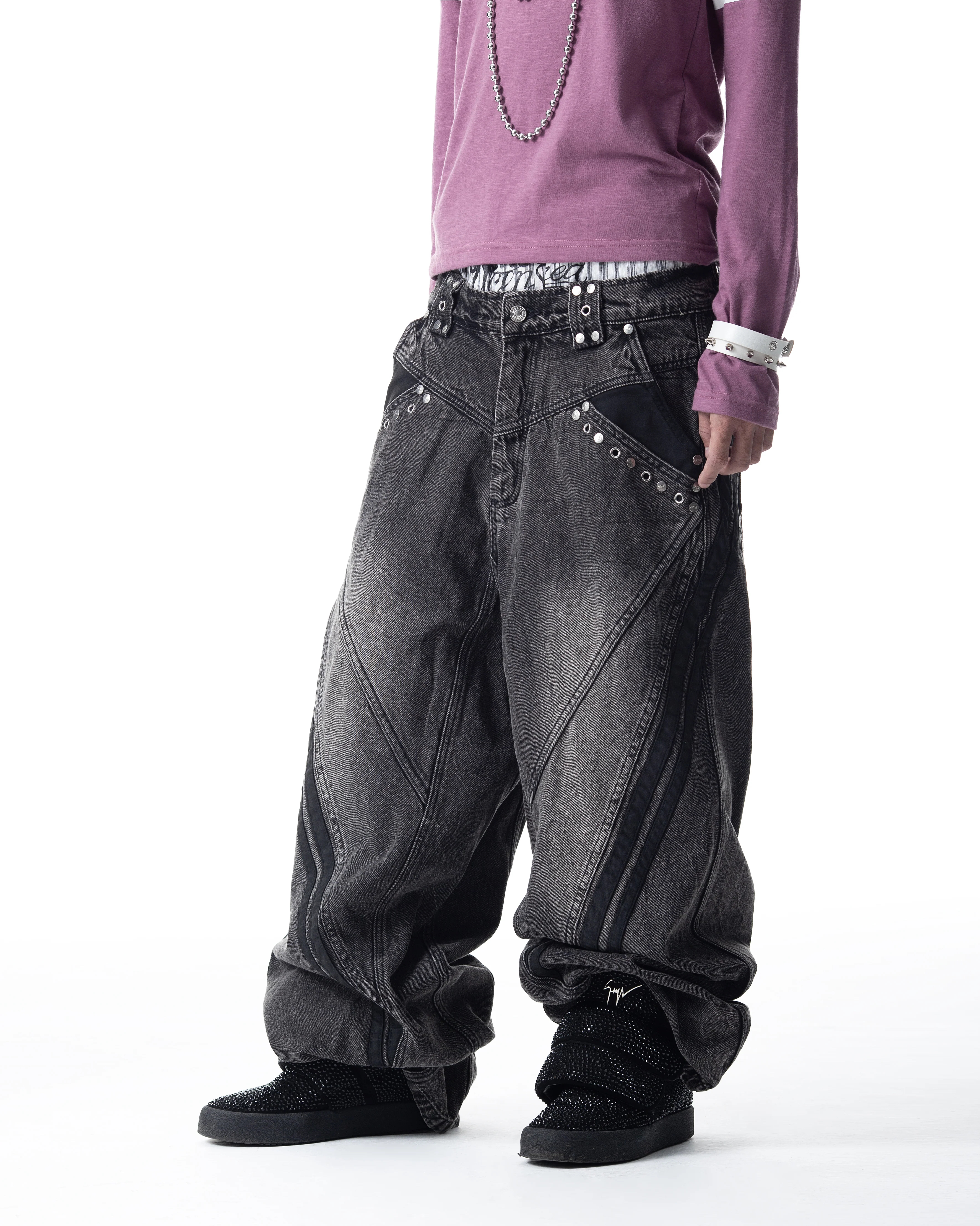 CH2 </2 DARK GREY TRACK JEANS