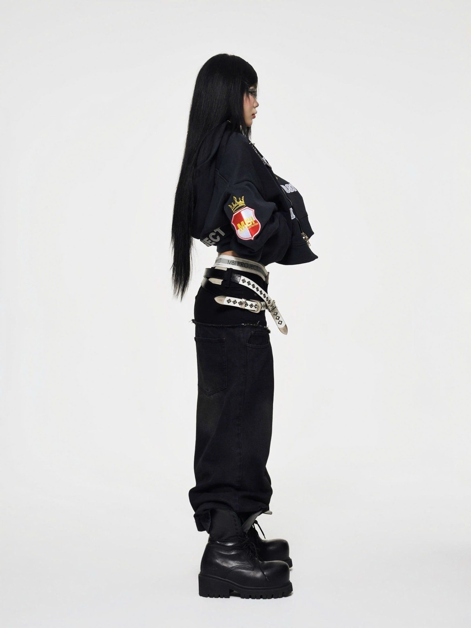 - Color: Black - Material: 100% cotton (440gsm crab foot felt) - Size: 0 | 1 | 2 (Boxy fit) Size 0: length 57 width 60 Size 1: length 60 width 63 Size 2: length 63 width 66 Measurements: (with a difference of 1-2cm) - Details: 90% of details are 3D embroidered, silk-screen printed university logo, 2-head YKK zipper, thick 2-layer bo, signature chain keeps the shirt form when opening the zip
