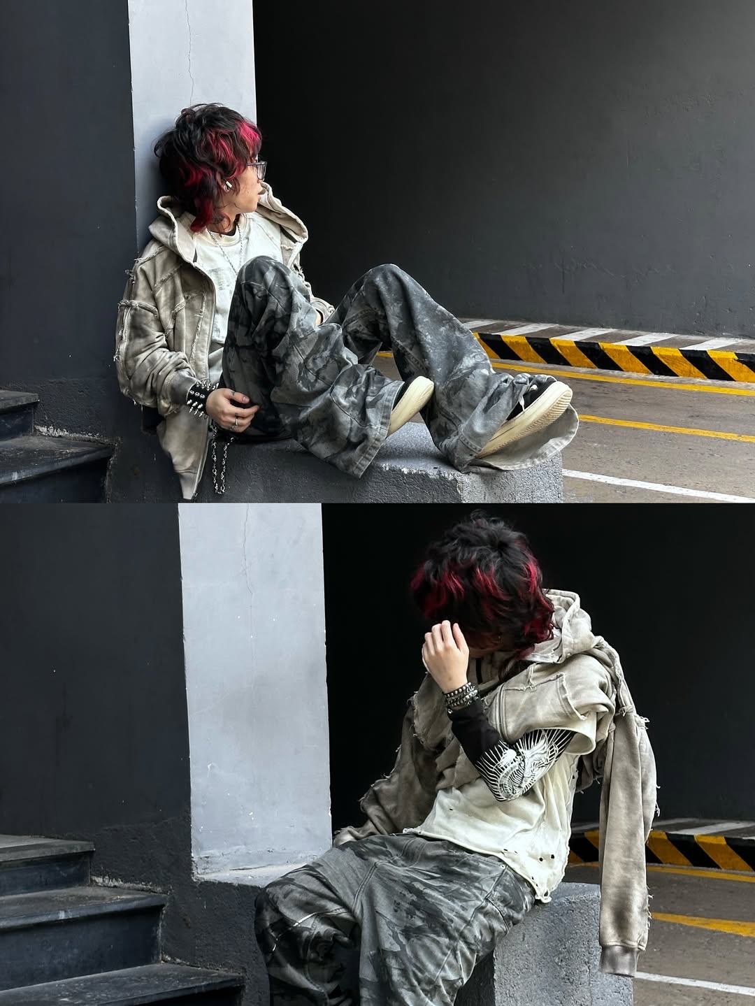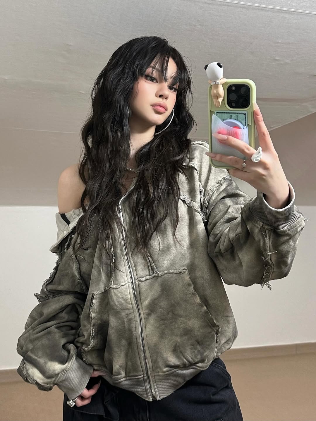 Size : S / M / L Material : Crab Leg Fleece 480gsm VL Buttons, Unravel Lines The Shirt, Dirty Washed, Layer Embroidery